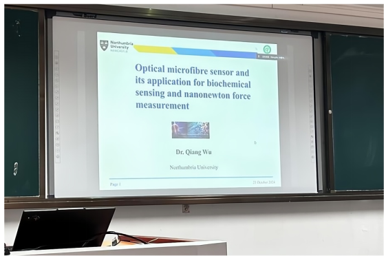 2024年10月21日,东莞理工学院迎来了本年度国际学术周的开幕日。在这一学术盛会的首日,我院荣幸邀请到了英国诺森比亚大学副教授吴强博士为师生们举办了一场主题为“光纤传感器及其在生化传感和纳牛力测量中的应用”的国际专家讲座。