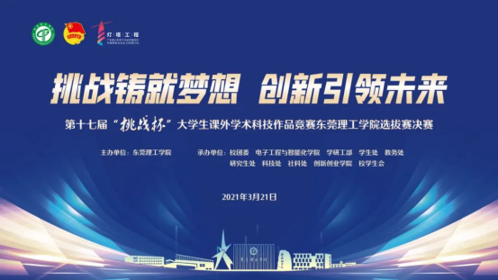 321日,第十七届“挑战杯”大学生课外学术科技作品竞赛东莞理工学院选拔赛决赛暨第一期莞工创业伙伴孵化营开营仪式在松山湖校区八号楼(电楼)举行。此次活动由东莞理工学院主办,校团委、电子工程与智能化学院、学研工部、学生处、教务处、研究生处、科技处、社科处、创新创业学院、校学生会承办。