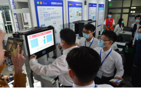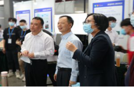 开幕式结束后,马宏伟校长、李忠红副书记等领导一行参观作品展览区,对我院入围校选拔赛的三个作品新时代背景下红色文化多元化传承研究——基于广东省潮州市红色文化传承的调研(B类)、见力仪-力量测量评估与分析系统(C类)、“EasyMart ONE”-基于VLC室内定位的无人超市AIC类)及其它展品进行深入了解,并与同学们亲切地交流。评委老师对参赛团队进行提问,认真地对每个作品打分评估。我院参赛团队积极应对挑战,对作品进行展示和介绍,及时解答疑惑,让参观者能够快速地加深对作品的认识