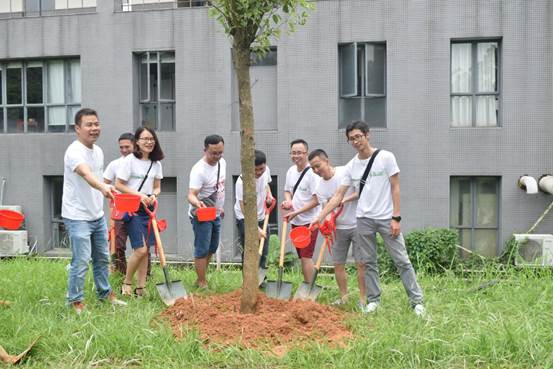 校友们还在电子楼的校道旁,共同栽下希望之树,表达了对学校“十年树木,百年树人”的真挚祝福和对学弟学妹们学有所成的期望。随后,回到了上课的地方——教室,举行时隔10年之久的班会,大家互相交流了自己近十年的经历,分享了自己的感想,并开展了丰富多彩的活动,当年的青涩纷纷涌上心头,仿佛回到了10年前,课室充满着欢笑。
