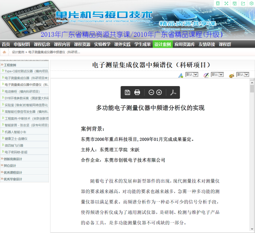 在广东省精品资源共享课的平台上提供有多媒体课件和教案(宋跃跃主编教材3个版本PPT;以及12本其他单片机、微机原理教材的PPT)、作业/习题/试卷库(历年考试试卷及评分标准40余套,教材习题答案10余个版本,考研试题库近30套)、自编讲义(实验和课程设计)、实验/实训/实习资源库(9个版本的实验指导书、课程设计指导及任务书、3个版本的课程设计指导书)、设计案例库(近120个不同案例)、应用资源库(近60个文档)、课外实践库和学生成果库(学生科研成果展示近70余项)等多种在线学习资源。在线课程针对不同层次学生的学习需求,为学生提供了丰富的在线学习资源。
