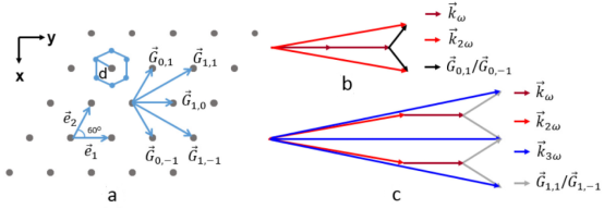 图13. 六角周期极化的LiTaO3晶体中的准相位匹配过程。