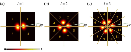 图14.共轭OAM模式叠加态的数字图像处理。