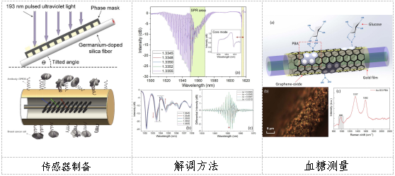 倾斜光纤光栅同时具有长周期光栅及布拉格光栅的特性,可以在测量折射率变化的同时校准温度变化引起的交叉感应,因此,其在应用于生物传感时可以进一步提升测量精度。另外,倾斜光纤光栅(TFBG)与表面等离子体共振(SPR)结合制备而成的TFBG-SPR传感器具有高探测灵敏度、低探测极限的特点,是未来应用于临床生物分子探测的理想工具,可以为重大疾病(如癌症)的早期诊断提供新的技术手段。