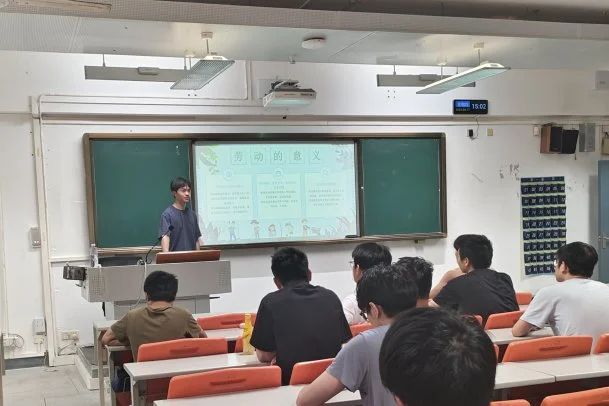 23电气1班在主讲人韦迪的带领下顺利开展班会。在“劳动铸就青春·传承点亮未来”方面,班会通过图片展示和数据分析,指出当前学生对劳动责任认知不足、参与度低的现状,提出“洁净校园行动”倡议,分享“文明宿舍”优秀案例,引用“一屋不扫,何以扫天下”激励同学们。针对求职力提升,介绍了学院的“雏鹰行动”计划,助力同学们应对未来的就业挑战。班会尾声,主讲人总结:“劳动是成长的基石,传承是文化的延续,职业是未来的方向。希望同学们以行动践行劳动精神,以热忱传承红色基因,以规划迎接职场挑战。”