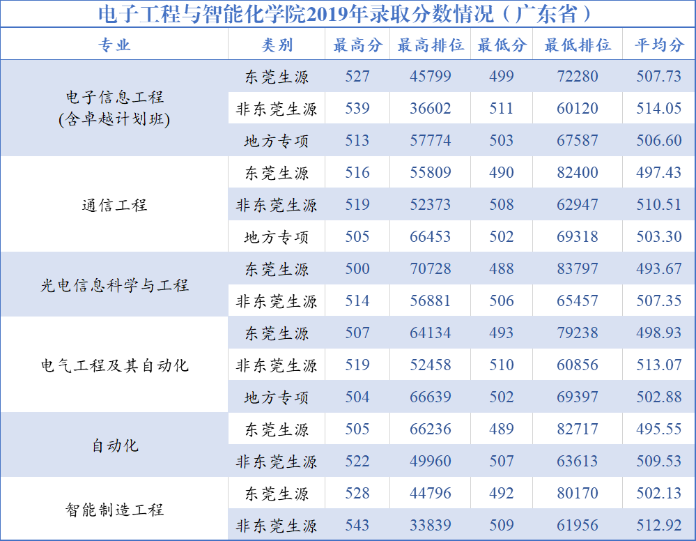 点击查看2019年东莞理工学院招生分数情况表(省外)。