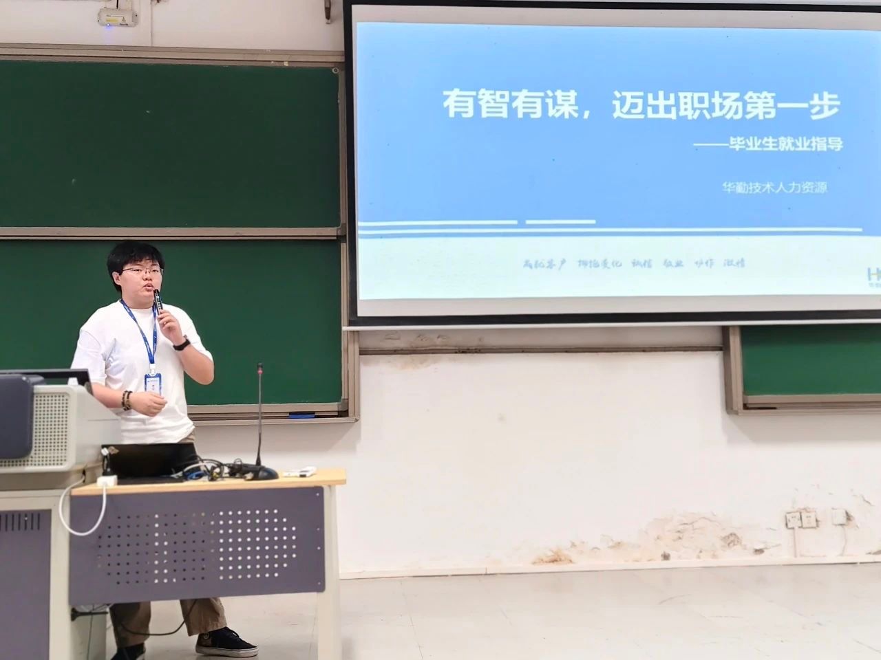 2025年4月18日,“雏鹰行动”职业规划系列活动之“名企进课堂,就业新航向”火热开展,电智学院2022级就业指导课堂上人头攒动,学院实习基地华勤技术、视源股份两家企业进入课堂为同学们带来了精彩的就业指导讲座。华勤技术人力资源经理眭维、招聘主管赵莉、马玟,校友李星梓,视源股份HR王艺霏、校友范乾煊进入就业指导课堂,为学生提供“一站式”求职赋能。