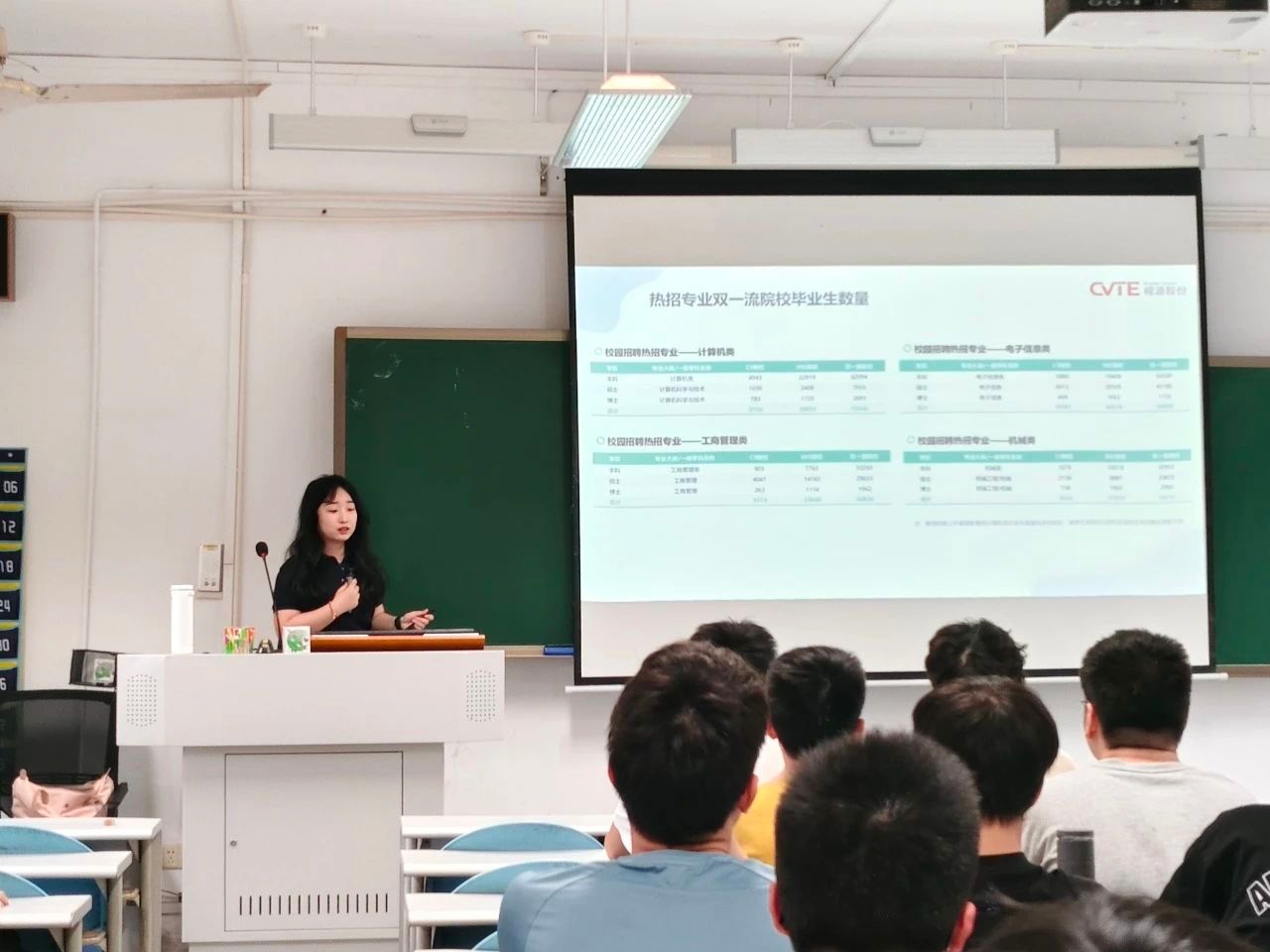 视源股份校友范乾烜围绕专业能力成长,详细介绍了公司的发展历程、企业文化、招聘岗位及福利待遇,拆解职级晋升通道,生动呈现职场新人成长图谱。同时,他还分享了招聘过程中的心得和经验,让同学们对即将到来的求职季充满了信心。