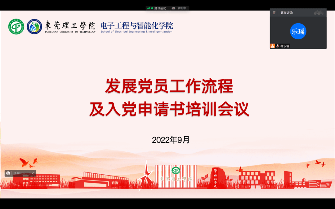 心中有信仰,脚下有力量。为增强新生对中国共产党的了解与认识,引导同学们积极向党组织靠拢,近日,我院通过线上会议举办新生入党启蒙教育。马克思主义学院教师兼电智学院特聘班主任唐晨诗博士主讲《青年,你为什么要入党?》,辅导员杨乐瑶为新生介绍发展党员工作流程,全体新生参加本次讲座。