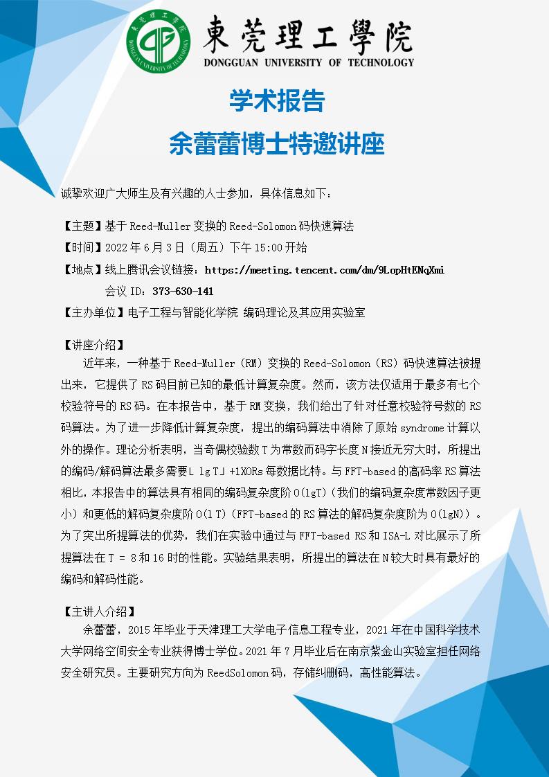 学术讲座 余蕾蕾博士特邀讲座