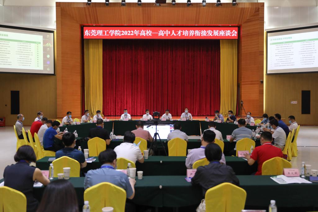 6月22日,东莞理工学院2022年高校—高中人才培养衔接发展座谈会在学术会议中心举行,本次会议以线上线下相结合的方式开展。学校党委书记成洪波、校长马宏伟、副校长杨敏林,东莞市教育局副局长邓柏松出席了会议,广东省内50多所优质生源基地中学校长及教师代表参加会议。